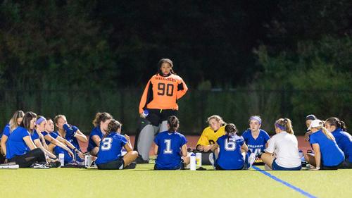 蓝色本校教练当地女孩庆祝国家女孩和妇女运动日